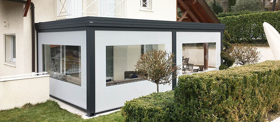 Du type de toiles, entre 150 toiles Screen (sergé 600), Soltis 86 et Soltis 92, 5 toiles occultantes Soltis B92 Black-Out pour vivre discrètement à l’intérieur de votre véranda VERANCO et en option des fenêtres transparentes en PVC. De la finition laquée des profilés en aluminium et du coffre (5 couleurs de base et en option 200 teintes RAL. De l’installer dans le coffre intégré VERANCO ou dans son propre coffre spécial placé en applique. En option profil PVC souple afin de prévenir une marque visible sur la toile.