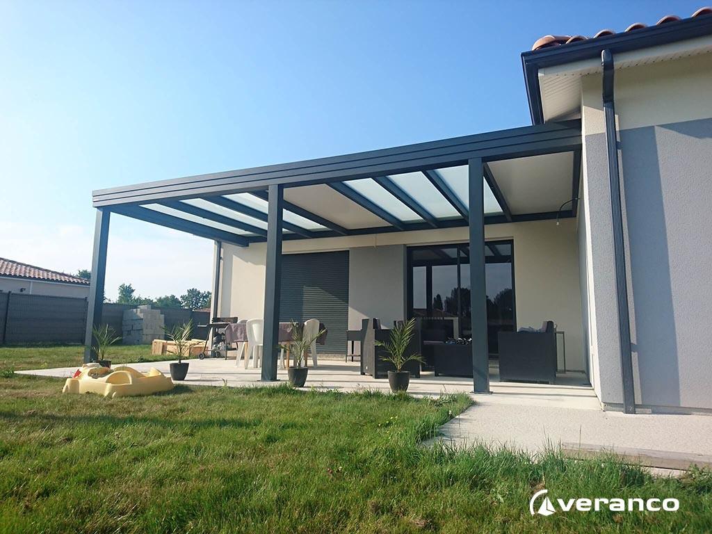 Sa toiture peut se décliner avec plusieurs types de matériaux, mais compte tenu de la faible pente de sa toiture, nous vous conseillons du polycarbonate opale Athermique ou du simple vitrage feuilleté opale.