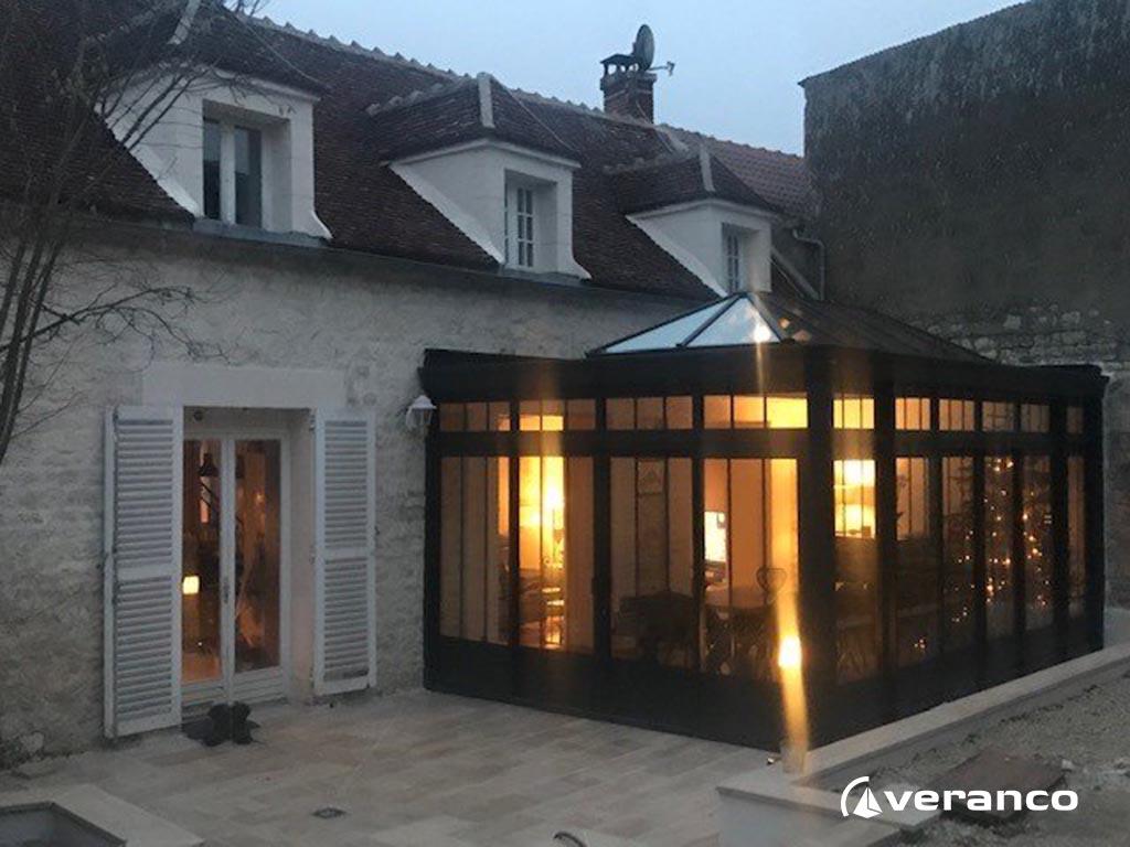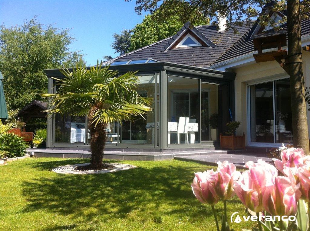 VERANDOME BORNEO est une véranda rectangulaire à toiture plate équipée suivant sa largeur de façade d’un dôme à 4 pentes. Le chéneau périphérique est équipé d’office de la réhausse softline.